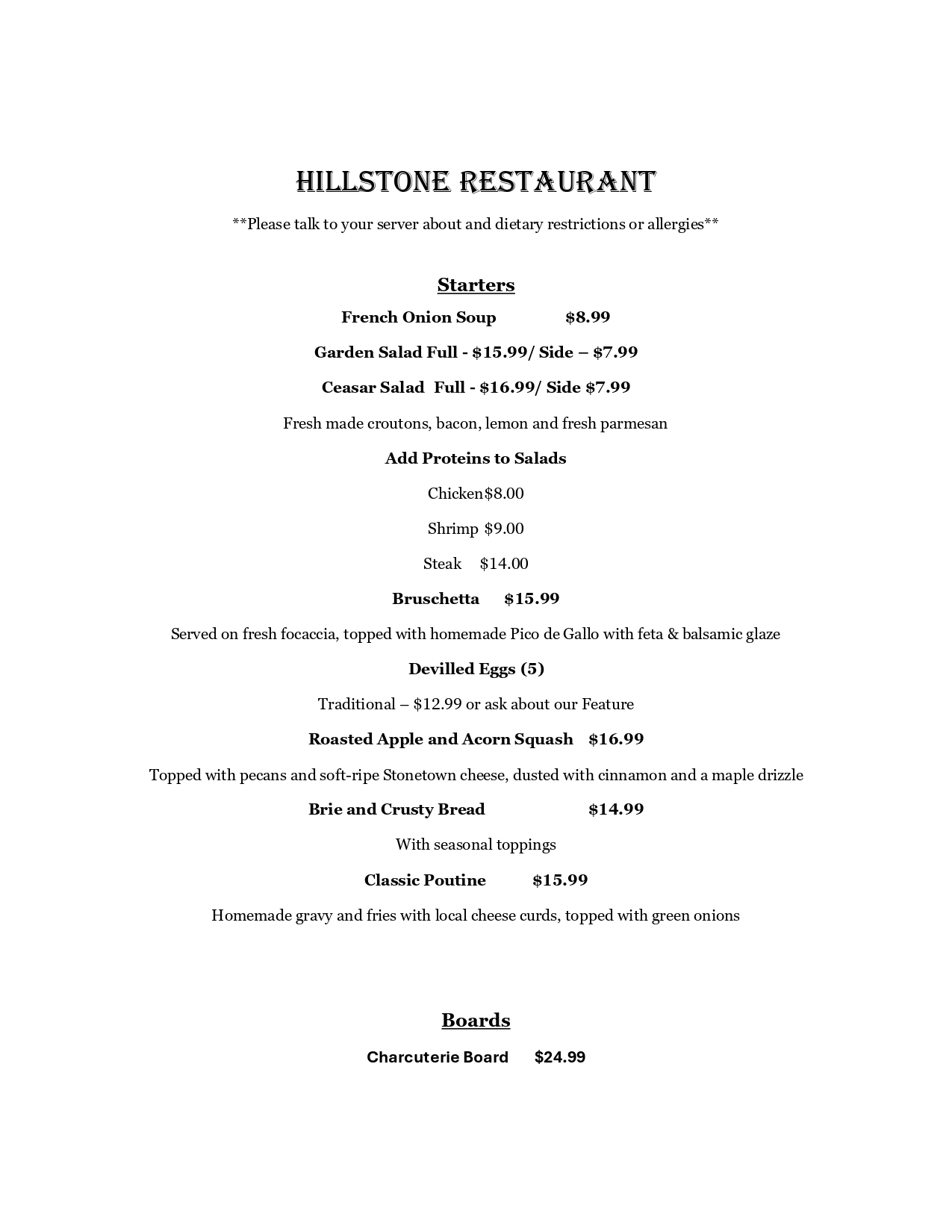 Join us at the top of the hill and savor the very best of Perth County. Hillstone Bar & Grill isn't just a place to eat—it's a celebration of local food, genuine care, and unforgettable dining. Come taste the bounty!